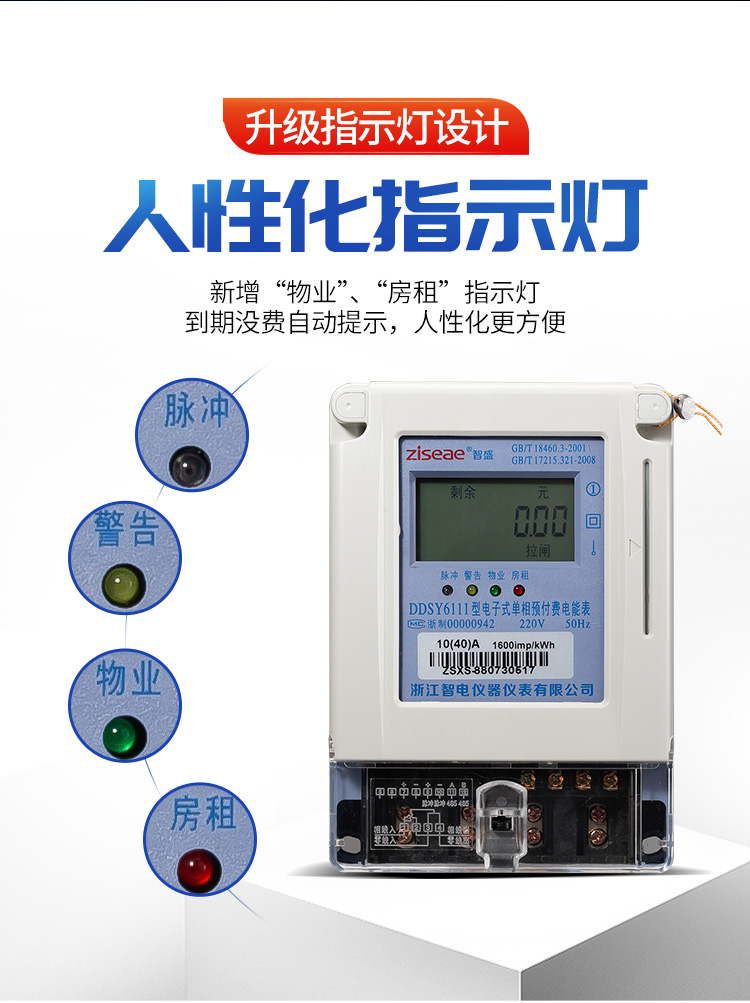 (2)預(yù)付費(fèi)電表的功能:經(jīng)典款電表是上顯示剩余電量、總用電量等,1代物業(yè)版電表上顯示剩余于金額、總用電量等,2代物業(yè)版電表上顯示剩余金額、總用電量、物業(yè)、房租剩余天數(shù)、北京時(shí)間等具體功能如下。