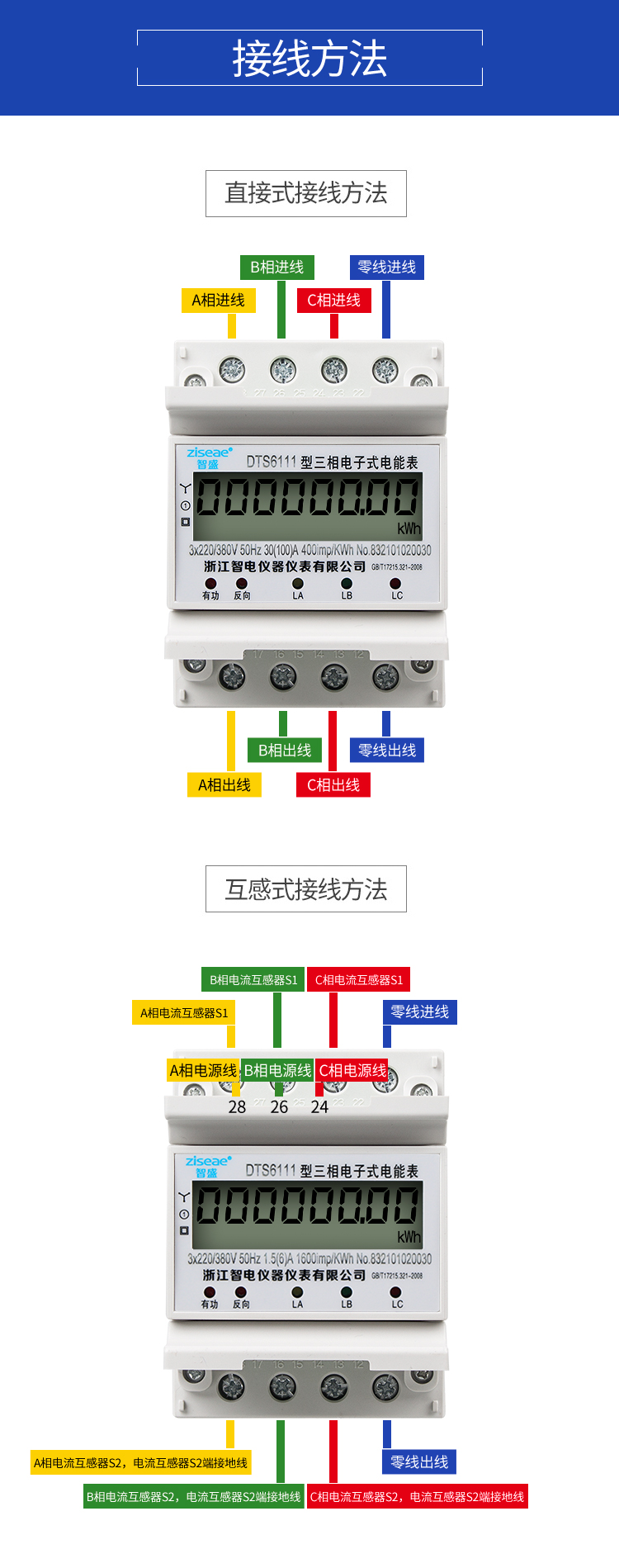 DTS6111、DSS6111型4P三相導(dǎo)軌式電能表(單顯電量)
