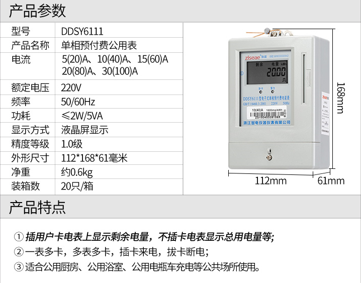 DDSY6111型電子式單相插卡預(yù)付費(fèi)電表,采用集成電路設(shè)計(jì),全自動(dòng)表面貼裝(SMT)生產(chǎn)工藝制造。電能表的線路設(shè)計(jì)和元器件選擇以較大的環(huán)境允差為依據(jù),可保證整機(jī)穩(wěn)定工作,精度高、高過載、低功耗,可靠性能高。內(nèi)置磁保持繼電器。通過控制繼電器實(shí)現(xiàn)控制負(fù)載的通與斷,實(shí)現(xiàn)督促用戶先買電后用電的功能。