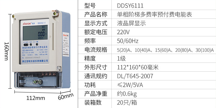 訂購產(chǎn)品: DDSY6111單相階梯多費率預付費電表