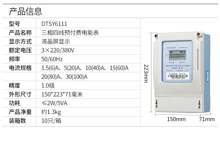 DTSY6111系列插卡式三相電子式預(yù)付費(fèi)電能表系我公司采用集成電路,16位A/D轉(zhuǎn)換、數(shù)字乘法器、應(yīng)用數(shù)字采樣處理技術(shù)并由先進(jìn)的單片機(jī)處理系統(tǒng)進(jìn)行數(shù)據(jù)的采集、處理和保存及應(yīng)用SMT工藝制造的儀表。適用于計(jì)量額定頻率為50Hz或60Hz的三相三線或三相四線交流電網(wǎng)中有功電能的消耗。