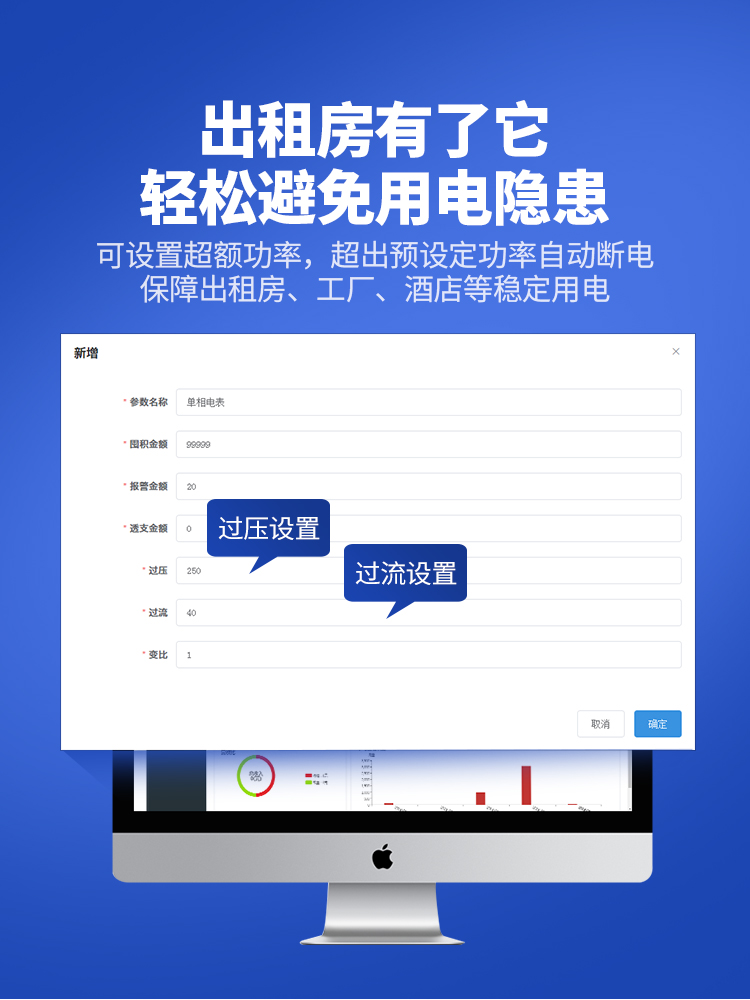 遠(yuǎn)程充值預(yù)付費電表可與本公司遠(yuǎn)程抄表系統(tǒng)和手機APP配套使用,遠(yuǎn)程抄表管理系統(tǒng)具有實時抄表、定時抄表外,還提供了設(shè)備管理功能,如告警、余額短信通知、遠(yuǎn)程充值、手機抄表、手機查詢、手機充值、預(yù)付費、后付費、自助充值機充值、遠(yuǎn)程拉合閘、過壓過流保護(hù)、各種查詢報表、統(tǒng)計報表下載等功能。